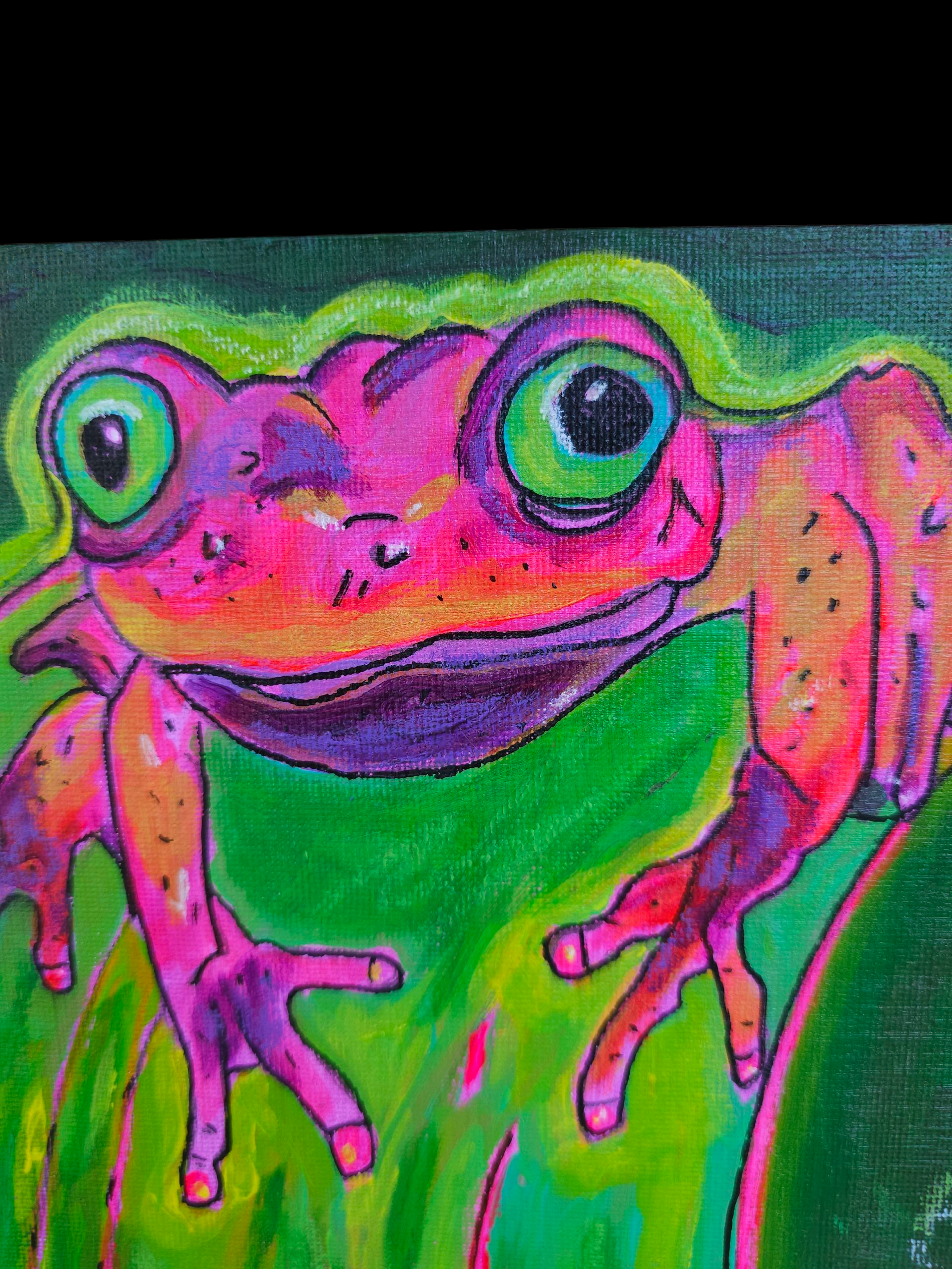 Psychedelic Tree Frog Original Art 8 x 10 on Canvas Board
